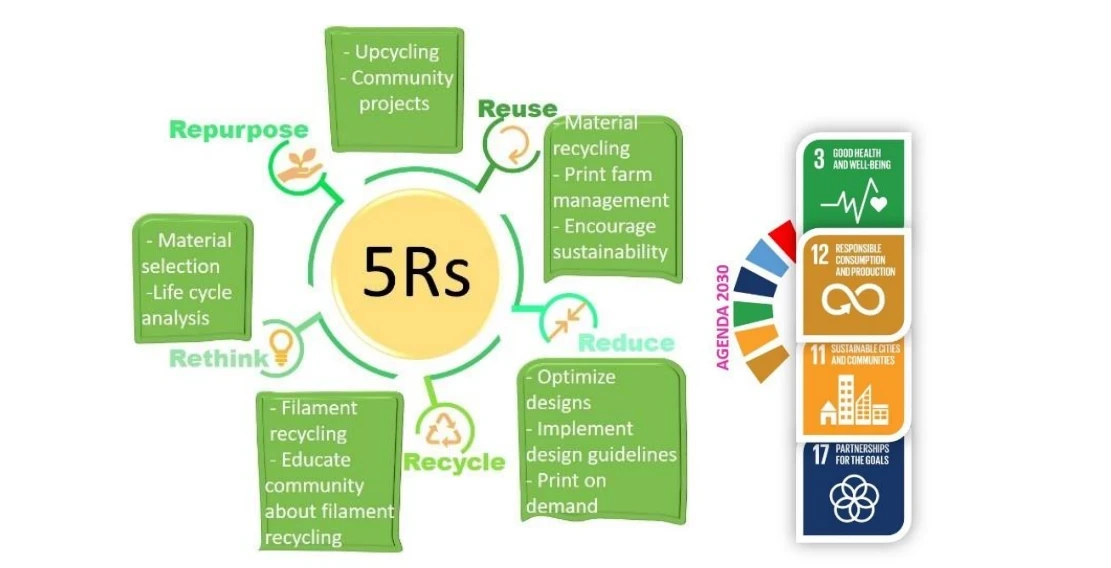 The 5 R's of sustainable development in 3D printing industry